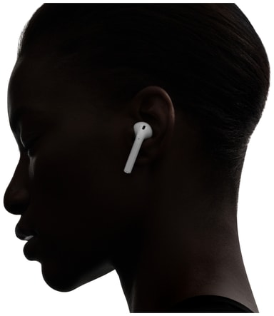 Att lyssna på dina favoritspår kunde inte vara enklare än det är med Apple AirPods fullt trådlösa hörlurar. Dess ultrakompakta design och avsaknaden av allt av kablar gör det problemfritt och bekvämt att bära dem. Två optiska sensorer med accelerationsmätare, känner av när du sätter in dina AirPods i öronen eller tar dem ut och fortsätter och pausar spelning av musik automatiskt.