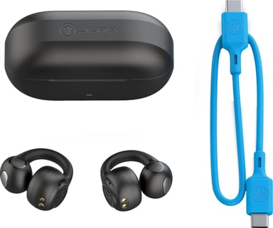 JLab Flex äkta trådlösa in-ear-hörlurar erbjuder ett unikt alternativ till traditionella hörlurar som är stolta över högljud och säker, bekväm lyssningsupplevelse. Den öppna manschettdesignen med clip-on låter dig hålla dig medveten om vad som händer runt omkring dig medan du njuter av kristallklara röstsamtal eller överlägsen musikkvalitet från 12 mm-högtalarna. Njut av upp till 21 timmars batteritid och stressa inte över vattenstänk eftersom dessa hörlurar är IPX4-skyddade.