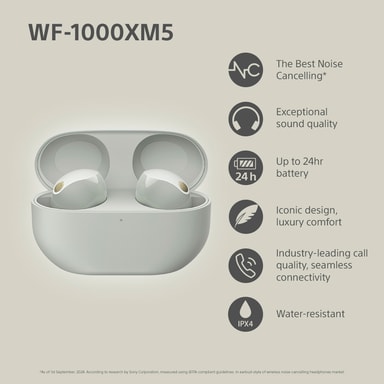 • Sony WF-1000XM5 True Wireless in ear-hörlurar (silver)