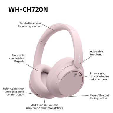 • Sony WH-CH720N trådlösa around-ear hörlurar (rosa)