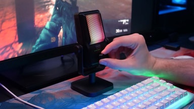 Få bättre inspelningsljud med Cherry Xtrfy Ngale R USB mikrofon med smart brusreducering, dubbla inspelningslägen med ett low cut-filter, plug-and-play-inställning och dynamisk RGB-belysning.Läs mer om produkten