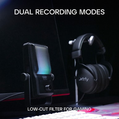 Skräddarsy ljudinspelningen efter dina behov med två inspelningslägen. Genom att hålla ned touch mute-knappen kan du växla mellan standardläge och low cut-filterläge designat speciellt för gaming. Filterläget eliminerar lågfrekventa bakgrundsljud som exempelvis bruset från en PC-fläkt.