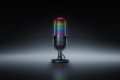 Razer Serien V3 spelmikrofon får dig inte bara att låta bra tack vare dess supercardioid polära mönster, auto-gain limiter och bullerdämpande konstruktion utan den ser också bra ut med sina spelreaktiva LED-lampor. Dessutom är den superenkel att installera och använda tack vare sina Tapping-funktioner.