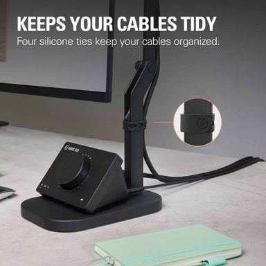 Detta stativ inkluderar fyra silikonkabelband för att hjälpa till att hålla dina kablar organiserade och förhindra trassel.