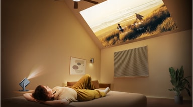 Denna projektor anpassar sig till alla skärmstorlekar från 65 till 300 tum, så att du kan projicera på en vägg i vardagsrummet eller på en gigantisk skärm i trädgården.