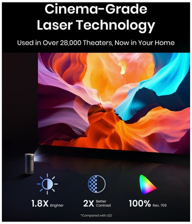 Utrustad med HDMI 2.1, USB-C, Bluetooth och inbyggt Wi-Fi erbjuder denna projektor flera sätt att ansluta dina enheter. Oavsett om du streamar innehåll eller ansluter till en spelkonsol ger projektorn sömlös integration med din teknik.