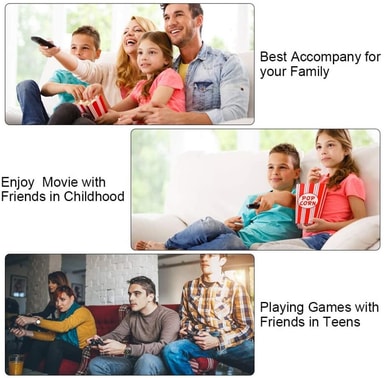 Multikompatibel med olika sorters enheter: Projektorn har en multiport med HDMI/AV/SD-ingångar vilket gör att du kan anslutan telefoner, datorer, surfplattor, dvd-spelare och så vidare. Du kan även visa videos och foton via micro SD-kort eller en mobil hårddisk.