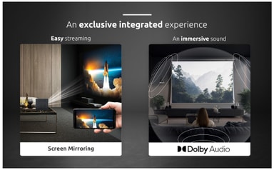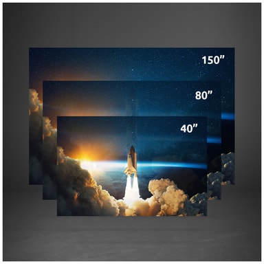 Projicera bilder från 40" till 150" tum, vilket gör MIRA 1 anpassningsbar för olika utrymmen och visningsbehov, oavsett om det gäller mindre rum eller större lokaler.