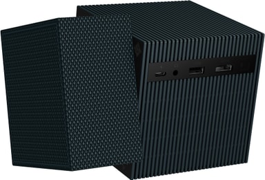 Den unika kubformen är inte bara snygg – den är praktisk. Den vridbara konstruktionen gör det enkelt att justera betraktningsvinklar, medan det kompakta formatet gör den lätt att ta med överallt.