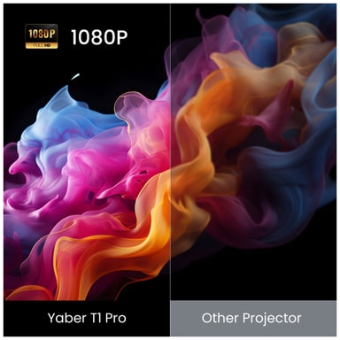 Yaber T1 Pro-projektorn levererar video och ljud av hög kvalitet samtidigt som den erbjuder större frihet vid placering. Titta på dina favoritfilmer och program i Full HD-kvalitet och låt dig omslutas av det fylliga och detaljerade ljudet som möjliggörs av Turbo Sonic-tekniken. Du kommer inte ha några problem med att hitta den perfekta platsen tack vare 180° kardanupphängning och Auto Keystone, Fokus och andra smarta tekniker.