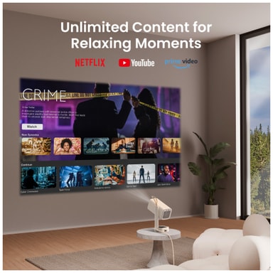 Med 250 lumen får du hög ljusstyrka och kristallklara bilder även i väl upplysta rum. Det korta projektionsavståndet och 180° kardanstativet ger större frihet vid placering för att göra det enklare att hitta den perfekta platsen för din projektor.