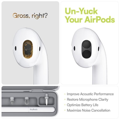Med KeyBudz AirCare 2.0 Premium rengöringskit kan du enkelt ta bort öronvax och skräp från dina AirPods eller rensa ur telefonens laddningsport. Rengöringskitet följer Apples riktlinjer och garanterar din enhets säkerhet under rengöring.Läs mer om produkten