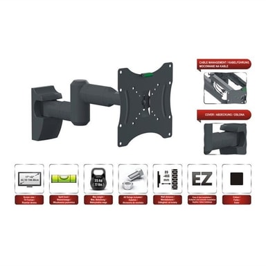 Red Eagle Väggfäste Flexi Apollo 17-42"""" Red Eagle väggmontering för LED-TV. Lätt och snabbt att installera - TV-format: 17""""-42"""" / cm 43-106 - Vattenpass - Maximal belastning: 35 kg (77 Ibs). - väggavstånd 89-466 mm - VESA: max 200x200 mm - lutningsvinkeln: +/- 15 ° - svängbarhet: 180 ° - Skal som döljer stålkonstruktionen - Kabelhantering - Färg: Svart - Produktvikt: 1,95 kg