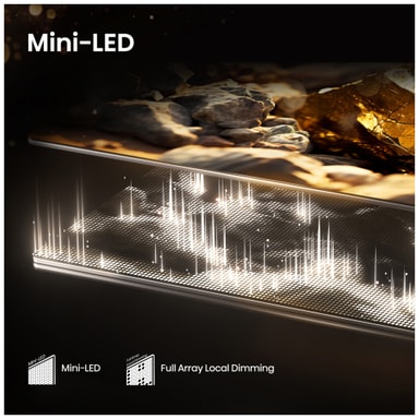 Mini-LED-tekniken lyfter din tittarupplevelse med livfull ljusstyrka och djupa, rika skuggor – allt med slående klarhet.