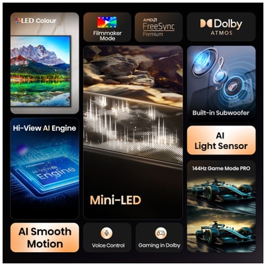 Mini-LED-tekniken lyfter din tittarupplevelse med livfull ljusstyrka och djupa, rika skuggor – allt med slående klarhet.