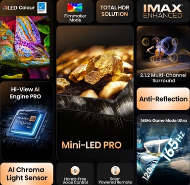Hi-View AI Engine PRO-processorn analyserar varje bildruta i realtid. Med hjälp av AI-driven scenidentifiering och adaptiva justeringar optimeras färg, kontrast och rörelse för oöverträffad bildkvalitet. Varje bild känns mer detaljerad, naturlig och uppslukande.