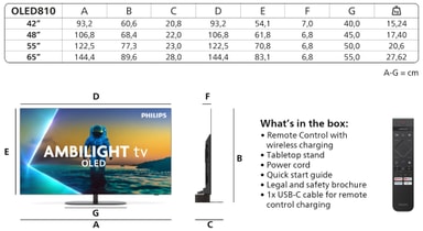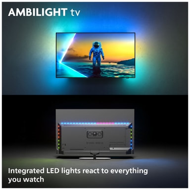 Philips 65" OLED810 4K OLED Smart TV ger enastående bild- och ljudkvalitet till ditt hem. P5 AI Intelligent Picture Engine med HDR, OLED-teknik och Ambilight skapar en uppslukande upplevelse som sträcker sig bortom skärmen.Läs mer om produkten