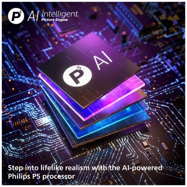 Den 8:e generationens P5-motor använder AI-algoritmer för att förbättra bildernas jämnhet och skärpa för en unik tittarupplevelse och detaljer som aldrig setts förut. AI-algoritmen kan urskilja element av natur, ansikten, rörelse och mörker, och optimerar digitalt allt på skärmen i realtid. Den ökade bearbetningskraften säkerställer toppkvalitetsprestanda. Resultatet är ännu djupare svärta, ljusaste vitt och mer levande, naturliga färger med otrolig detaljrikedom, så att du kan njuta av sport, filmer och allt annat till fullo.