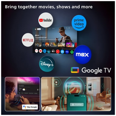 Google TV-operativsystemet ger enkel tillgång till en värld av underhållning. De intuitiva menyerna ger personliga rekommendationer för filmer, videor, serier, låtar, spel och mycket mer. Använd mindre tid till att söka och mer tid till att bli underhållen. Ju mer du använder din Google TV, desto mer kommer du att njuta av den.