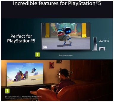 Spelmenyn samlar dina inställningar och assistansfunktioner på ett och samma ställe. Åtkomst på distans via PS Remote Play. ALLM/eARC säkerställer responsiv spelupplevelse.