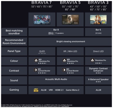 Dolby Vision är en teknik som du vanligtvis hittar på bio, men som finns tillgänglig på BRAVIA 3, så att du kan njuta av filmisk detaljrikedom, kontrast och färg hemma. För att uppleva den fulla filmiska förmågan från första början kan du lösa in 5 filmer och 12 månaders obegränsad streaming på SONY PICTURES CORE - Sonys exklusiva filmapp.