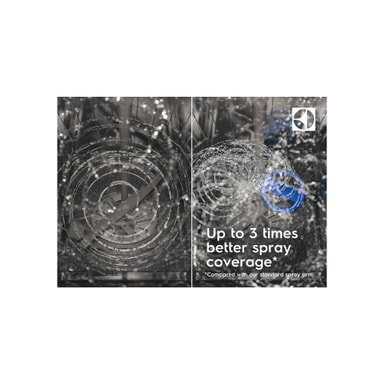 Diskmaskinen 600 SatelliteClean® har en innovativ spolarm som erbjuder 3x bättre spraytäckning jämfört med standardsystemet. Den garanterar rengöring i alla hörn så att till och med tätt staplade föremål diskas noggrant.