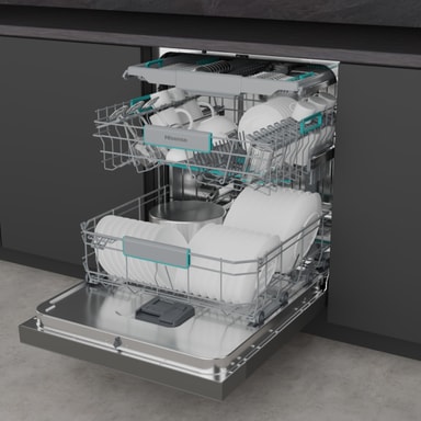 Aqua Protect-systemet ger trygghet med läckagedetektering och automatiskt vattenstopp vid eventuellt fel. En modern touchpanel ger intuitiv kontroll, och den automatiska dörröppningen underlättar torkningen genom att släppa ut ånga efter diskprogrammet.