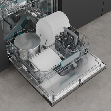 Diskmaskinen är utformad för att möta dina dagliga behov. Med två flexibla korgar finns det gott om möjligheter att få plats med allt, från tallrikar till större kastruller och stekpannor. Den övre korgen kan höjdjusteras och fällbara tallriksstöd gör det enklare att få plats med även stora köksredskap. Bestickkorgen passar i den nedre korgen och kan användas som en enkel eller dubbel enhet. Den kan till och med tas bort helt för att få mer utrymme.