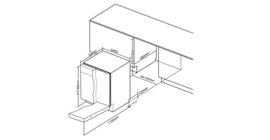 Vid installation av diskmaskin krävs ett oskadat, vattentätt och uppsamlande tråg tillsammans med ett vattenlarm som möter aktuella branschkrav. Dessa köps separat.