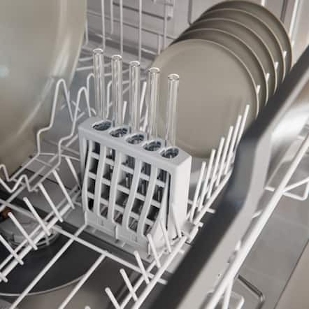 Extra stor flexibilitet erbjuder 3D-MultiFlex-besticklådan, FlexCare-kopphyllan och den tvådelade, fällbara pinnraden. Vinglas hålls med silkonkuddar på FlexCare Glass & Bottle och här finns det finns plats för upp till fyra flergångsflaskor. Sidliga MultiClips håller små diskdelar och XL-Assist-hållaren håller stora diskdelar och skapar därmed mer utrymme. I StrawClean-korgen diskas återanvändbara sugrör optimalt.