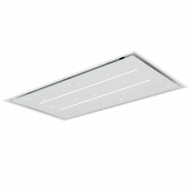 Takintegrerad köksfläkt, vitt glas, 91cm, flyttbar motor som kan placeras upp till 8 meter bort, dekorationsbelysning ""Stjärnhimmel"", kompatibel med SilverConnect, kapacitet 216-758 m3/h (INT motor), ljudnivå 44-62dB (INT motor), Energiklass A+ (INT motor).