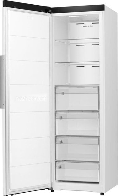 PureFit-designen säkerställer en sömlös anpassning till ditt kök, med snygga linjer och en modern estetik som kompletterar alla inredningar. Upplev den perfekta blandningen av stil, effektivitet och avancerad teknik med vår vita frys. Oavsett om du vill förvara frysta måltider, glass eller större matkassar är den här frysen utformad för att uppfylla alla dina behov samtidigt som den förhöjer utseendet på ditt kök.