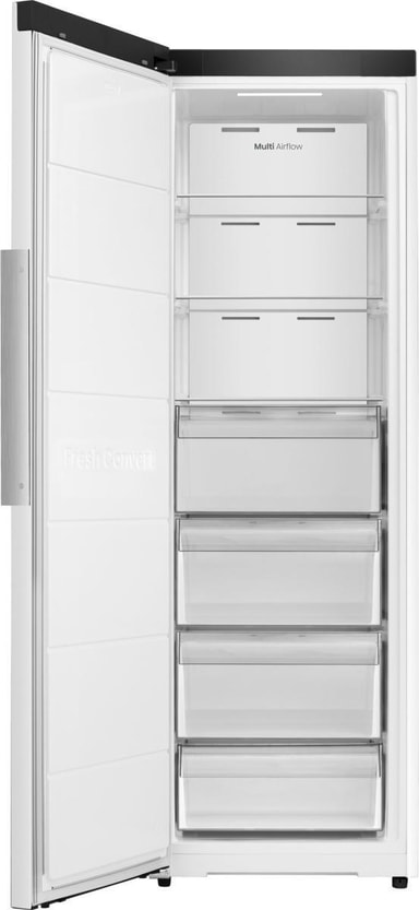 Förbättra ditt kök med den här toppmoderna vita frysen, som är utformad för att hålla din mat perfekt fryst samtidigt som den ger en touch av elegans till ditt hem. Den här frysen mäter 185,6x59,5 cm och är helt vit och passar sömlöst in i alla köksinredningar.