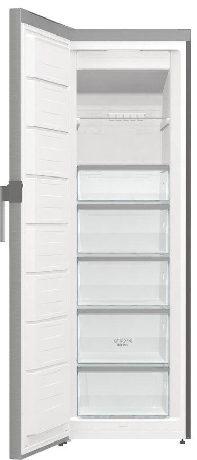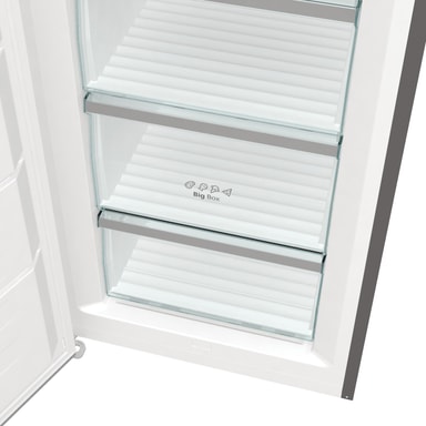 Denna utmärkta frys kräver minimalt med utrymme och erbjuder en stor lagringskapacitet. Tack vare den moderna platta dörrdesignen passar den perfekt in i alla kök.