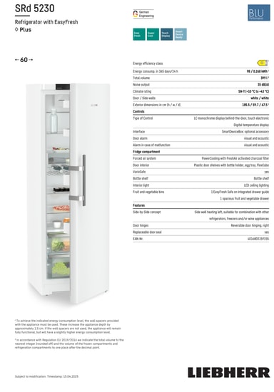 Liebherr SFNd 5237-20 001 är det perfekta tillskottet till varje modernt kök. Med en tyst drift på 36 dB är denna frys med 277 liters kapacitet perfekt för att förvara alla dina nödvändigheter. Dessutom har den en EasyOpen-funktion som gör det enkelt att komma åt innehållet.