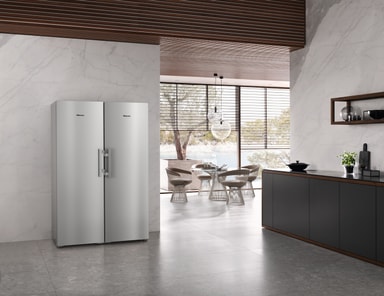 Tack vare NoFrost-systemet behöver du aldrig mer frosta av din frys från Miele. Genom cirkulationskylningen fördelas den kalla, torra luften jämnt, så att det inte kan bildas någon is i innerutrymmet. På detta sätt isar din kyl eller frys inte igen, och lådorna får ingen störande isbeläggning som gör dem svåra att öppna eller stänga. NoFrost ger högsta bekvämlighet vid infrysningen och du slipper den besvärliga avfrostningen – för alltid.