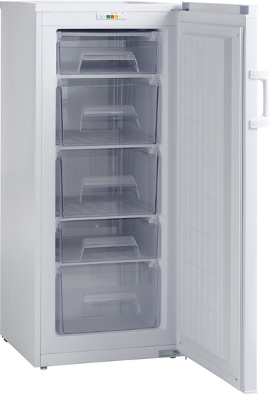Scandomestics frys FRF127WE håller kött och mejeriprodukter fräscha med en kapacitet på 127 liter. Det har fem genomskinliga fryslådor och en vändbar dörr för flexibel installation.Läs mer om produkten