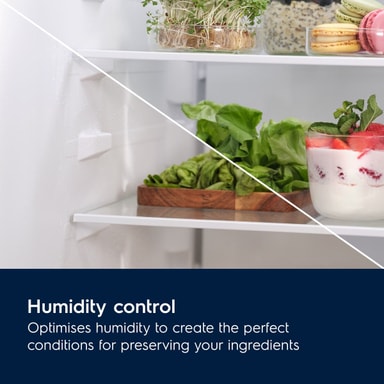 Njut av läckra grönsaker tack vare vår låda med fuktighetskontroll. Genom att reglera luftfuktigheten skapas den bästa miljön för förvaring av livsmedel. Stänger man ventilerna skapas det perfekta utrymmet för att förvara örter och bladgrönsaker, medan öppna ventiler ger optimal förvaring.