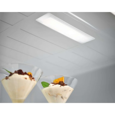 Kylskåpets rena stil passar perfekt in i det moderna köket. Dess rena linjer och helt plana design gör att den sitter precis tätt intill dina andra köksprodukter och bänkskivor. Och fickhandtagen är gömda längst ner på dörren för att avsluta den eleganta designen.