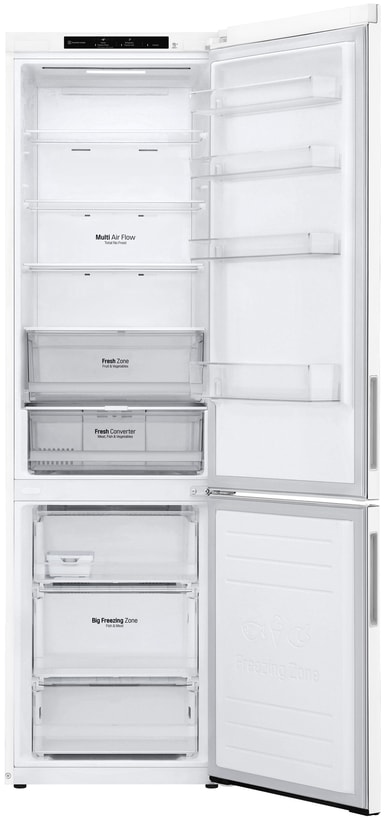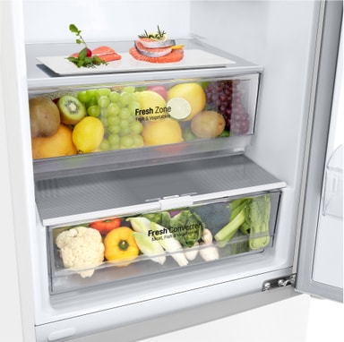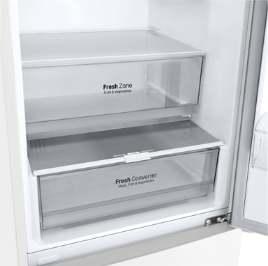 LG kyl/frys GBP62SWNAC uppfyller alla krav för säker, effektiv och pålitlig matförvaring. En rymlig interiör ger gott om plats för alla veckans matvaror, och du kan förlänga hållbarheten på dina färskvaror med Fresh Converter-facket. Den praktiska NoFrost-funktionen gör underhållet enkelt, medan Linear Converter-kompressorn säkerställer tyst och effektiv drift.