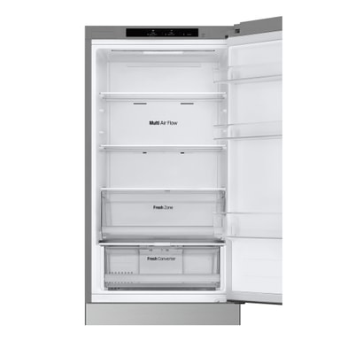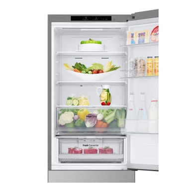 Utrustad med Smart Inverter Compressor™ är denna kyl/frys designad för optimerad energiförbrukning. Den har energiklass D, vilket säkerställer att den arbetar effektivt samtidigt som den håller dina elräkningar i schack. Kompressorn justerar kyleffekten baserat på mängden mat som förvaras, vilket ytterligare förbättrar energieffektiviteten.