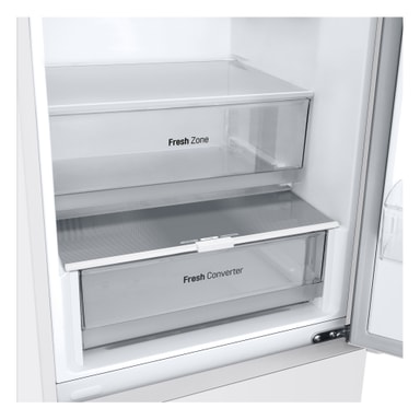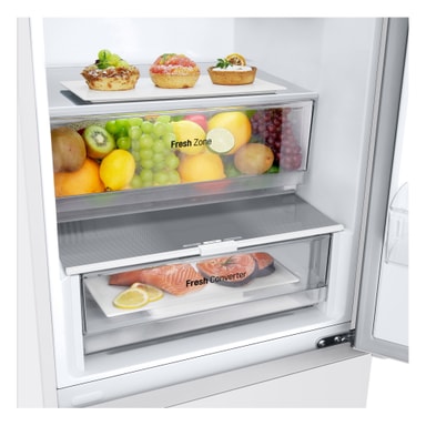 LG GBV21NCDSW kyl/frys-kombinationen är expertdesignad för att förbättra ditt kök med sina effektiva kylteknikologier och eleganta design. Denna fristående apparat kombinerar ett rymligt kylskåp och en underliggande frys, och erbjuder en total kapacitet på 344 liter för gott om förvaring av dina matvaror. Med avancerade funktioner som Door Cooling+, en Smart Inverter Compressor och en FRESH Converter-låda säkerställer denna modell att dina livsmedel förvaras under optimala förhållanden och behåller sin fräschör längre.