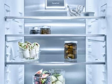 Bakväggen av CleanSteel i ditt Miele-kylskåp ser till att kylan på insidan fördelas optimalt och jämnt. Varken kondensat eller isbildning syns.