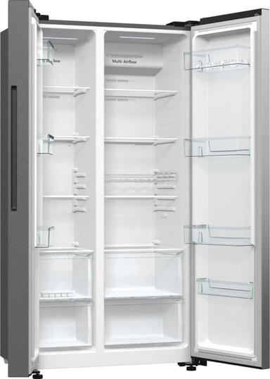 Från stor festkyl till frys för långtidsförvaring. Detta side-by-side-kylskåp från Hisense är en riktig kameleont i köket. Den rymliga kapaciteten på 550 liter (358 liter på kylsidan och 192 liter på fryssidan) kan enkelt anpassas efter alla dina förvaringsbehov. Med sin eleganta, moderna finish i rostfritt stål och bänkdjupa design integrerar kylskåpet sömlöst med ditt kök och skapar en sofistikerad och polerad look med både stil och generöst förvaringsutrymme.