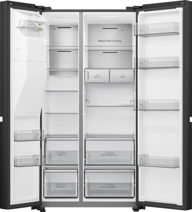 Hisenses kylskåp med stor kapacitet säkerställer att du kan förvara mat av alla former, storlekar och typer, och täcker alla dina veckohandlingsbehov. Rymmer bekvämt upp till 632 liter på en gång. Dess side-by-side-dörrdesign gör att du snabbt hittar allt du behöver med en enda blick.