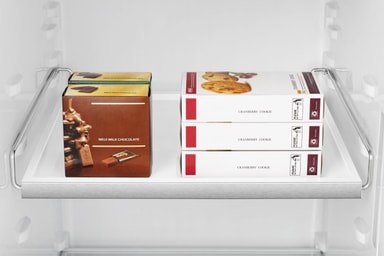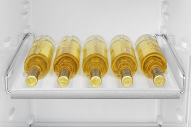 Ett särskilt och elegant utrymme för vin, läskedrycksflaskor och snacks, vilket frigör utrymme i kylskåpsdörren och förhindrar att flaskorna rullar runt på hyllorna. Den högkvalitativa kromfinishen gör dessutom stället otroligt hållbart och lätt att rengöra.