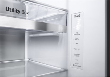 Kylskåpet är wifi-anslutet, vilket låter dig spara tid och njuta av smart kontroll via smartphone eller dator genom LG SmartThinQ-appen.