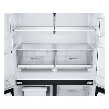 I kylskåpet finns två smarta lådor, Big Fresh Zone-lådan där du kan välja två olika fuktighetsalternativ för förvaring av frukt eller grönsaker.