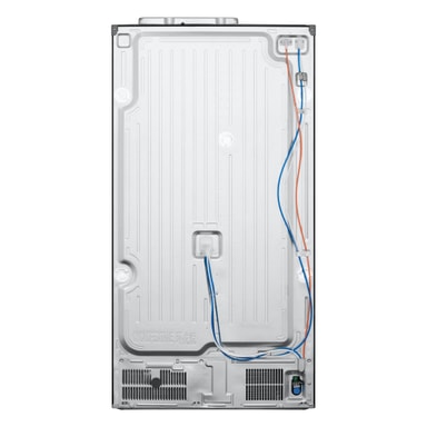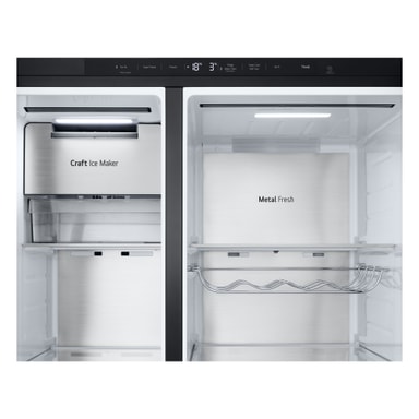 För ett mer premium utseende har den bakre väggen en inuti detta Side-by-Side en metallisk dekoration, Metal Fresh och den här modellen kräver en fast vattenanslutning för att ge dig kallt vatten och is!