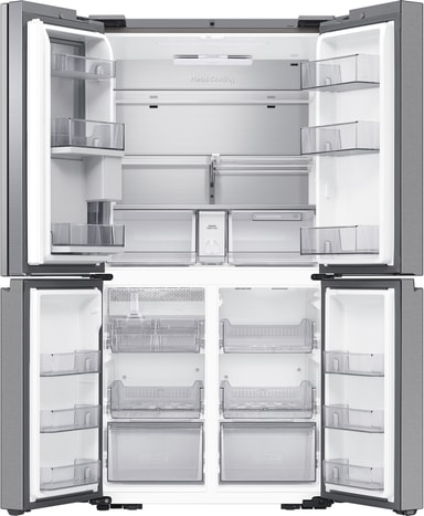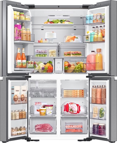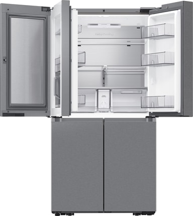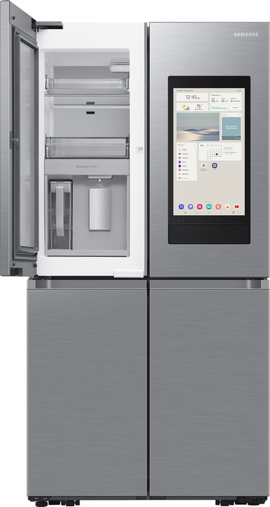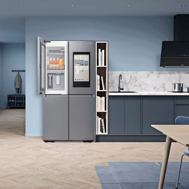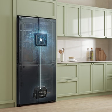 Underlätta vardagslivet med funktionen AI Vision Inside. Den inbyggda kameran fotar varje gång något ställs in eller tas ut ur kylskåpet. Den känner av vilken typ av matvara det är och kommer med ett rekommenderat bäst före-datum. Detta kan du även justera manuellt vid behov. Kylskåpet kan sedan skicka påminnelser om när matens bäst före-datum närmar sig. Du kan få notiser och se sammanställningen på Family Hub-skärmen eller i din SmartThings-app*. Tack vare detta är det lättare att hålla koll på vilken mat du har hemma, planera inköpen och minska matsvinnet.